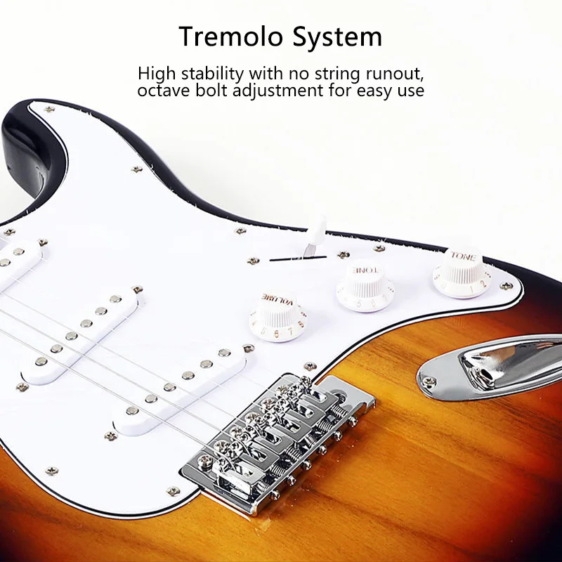 Entry Level ST Electric Guitar For Beginners 22 Frets Maple Neck 5-Way Pickup Control Solid Body With Accessories For New Player Product Parameters Product Name: ST Style Electric Guitar Number of Frets: 22 Neck Material: Maple Fingerboard Material: Laurel Wood Bridge Type: Tremolo System (6-Hole Rear Tremolo) Pickup Control: 5-Way Switch + 1 Volume 2 Tone…