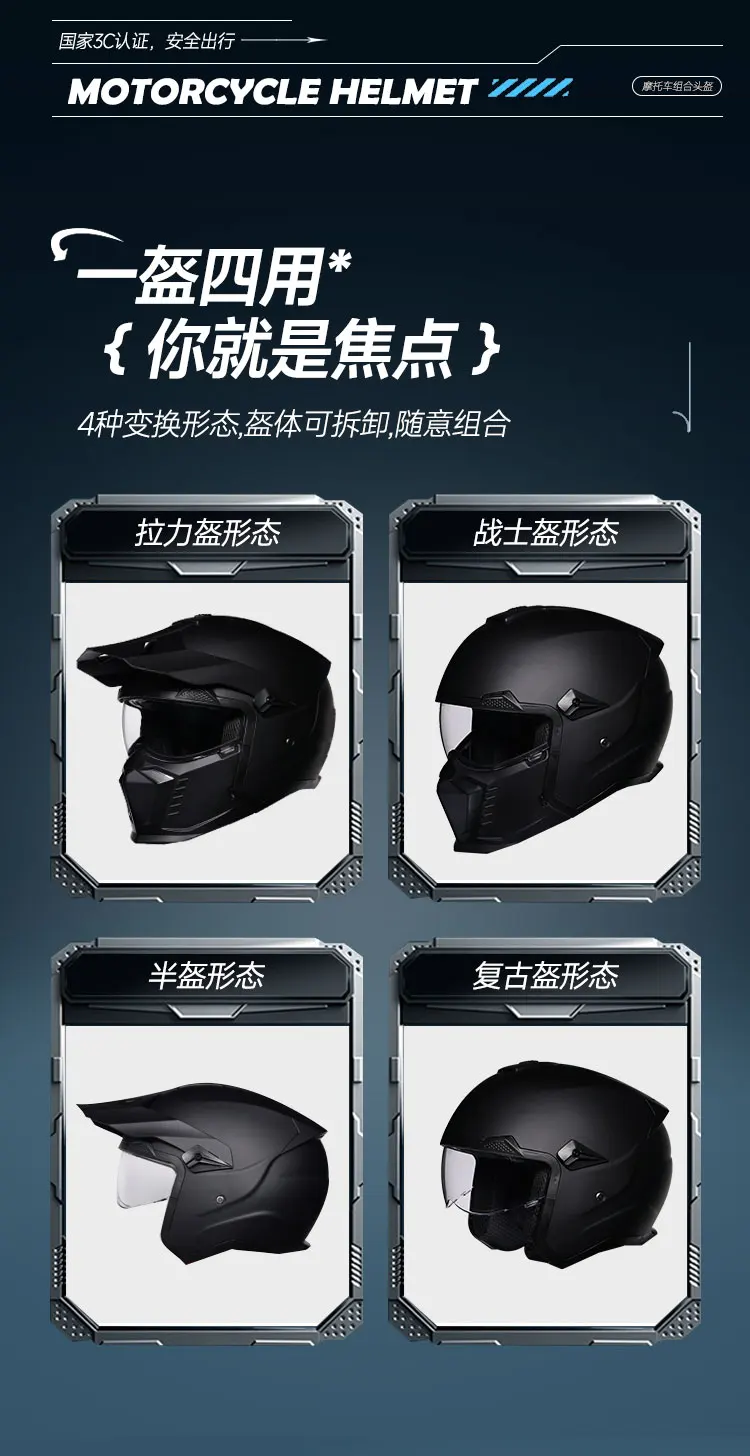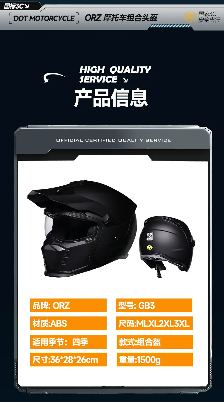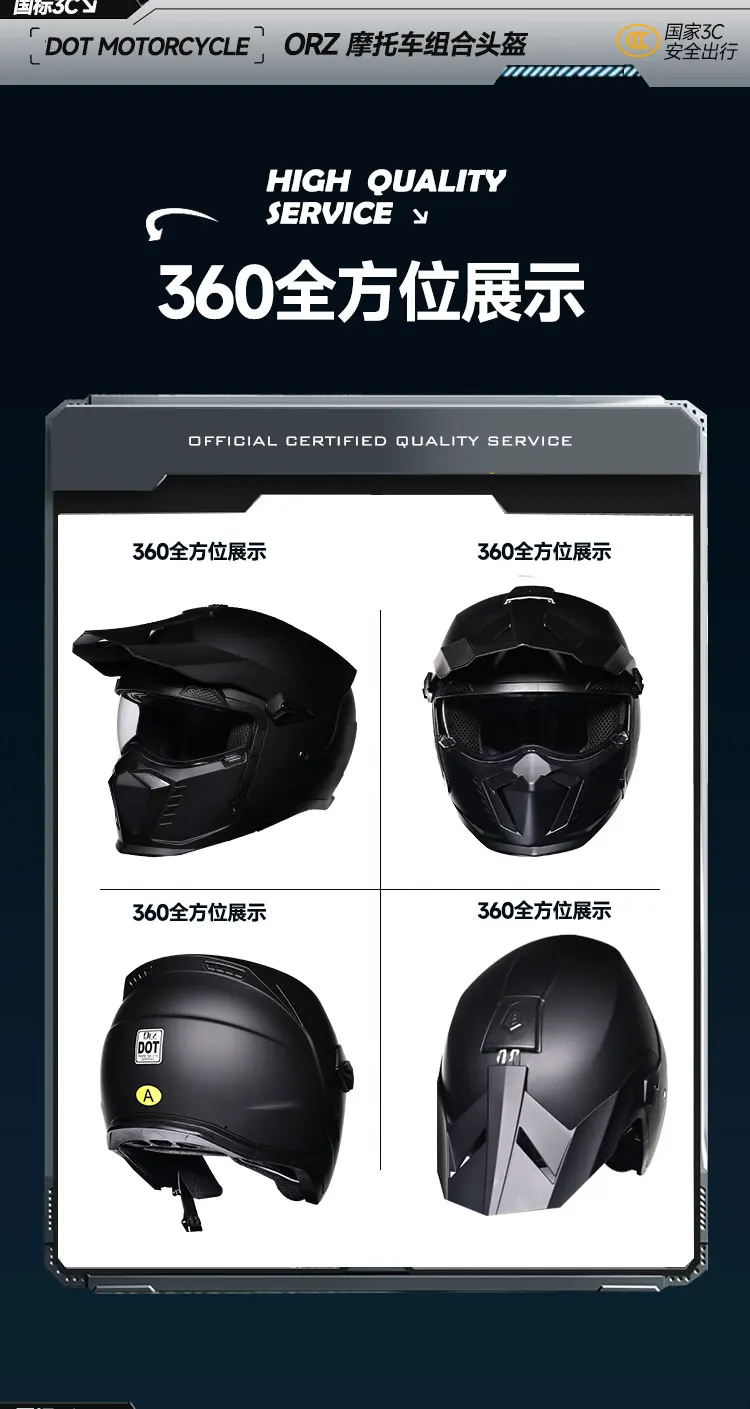 ORZ high-quality retro motorcycle helmet modular multifunctional combination full helmet DOT approved personalized warrior