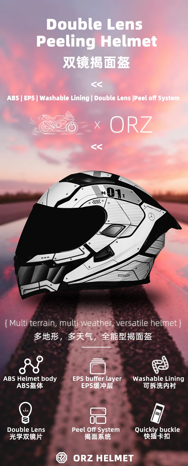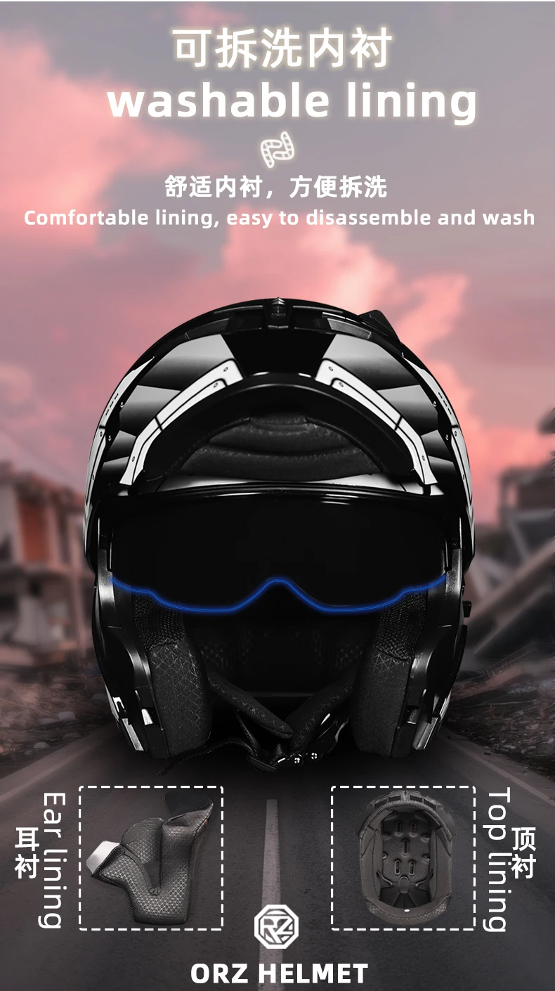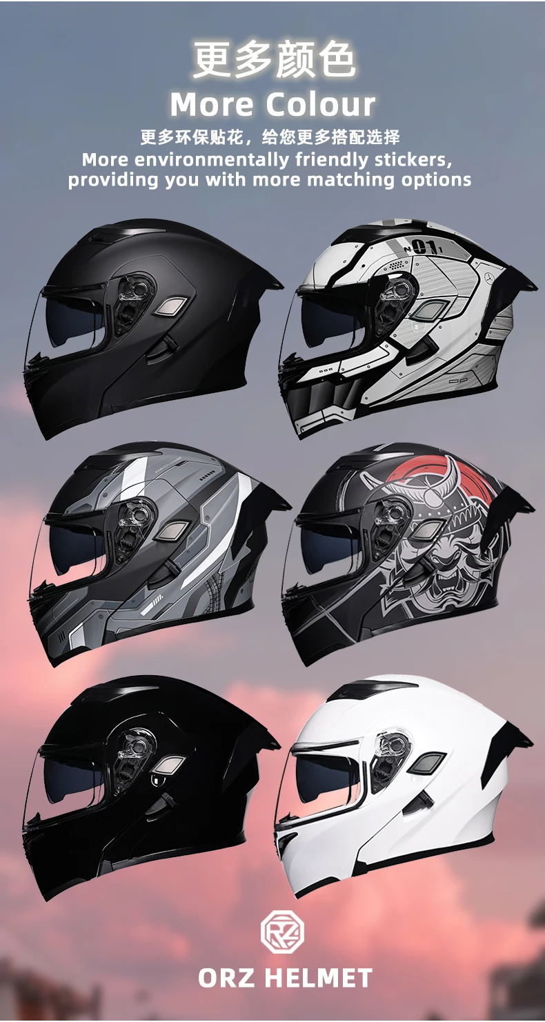 ORZ Motorcycle helmets Double Visors Modular Flip Up helmet DOT approved Full face casque moto racing Motocross helmet DOT